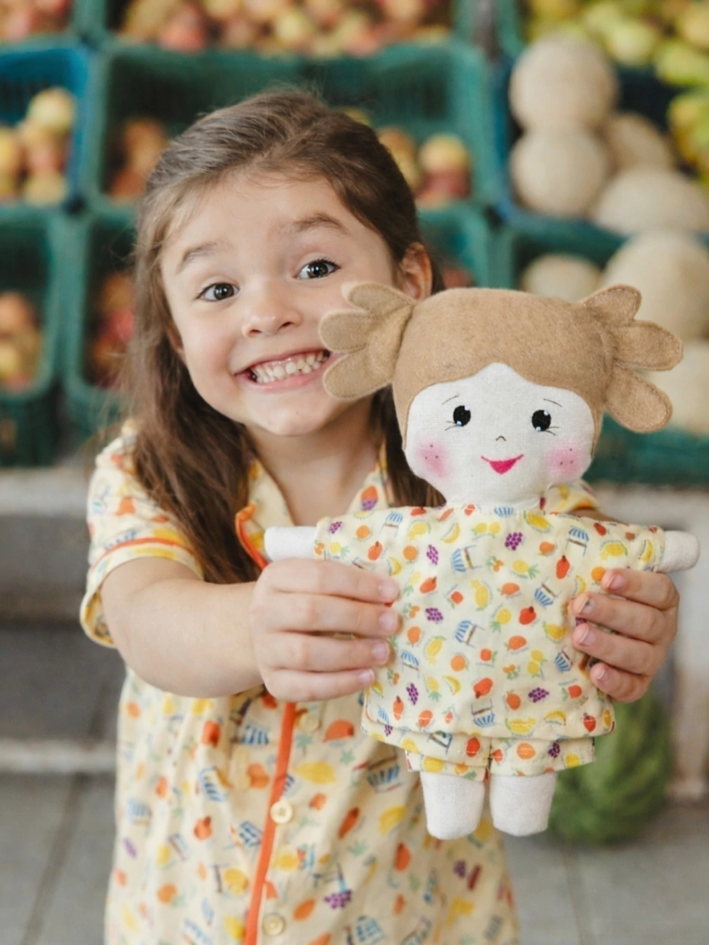A estampa autoral de frutas Divó foi desenvolvida com exclusividade, trazendo cores vibrantes e um visual alegre que transforma a hora de dormir em um momento especial.